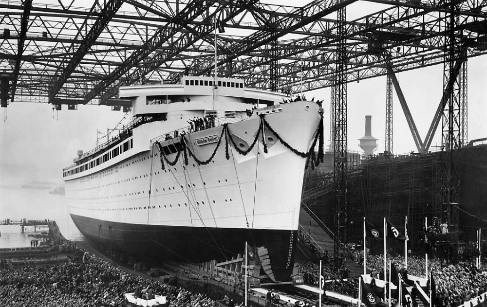 The grim reality of January 1945 was utterly inconceivable to anyone at Hamburg’s Blohm & Voss shipyard on May 5, 1937. That day, everyone focused on the new ship launched by Hedwig Gustloff in the presence of Adolf Hitler. Named for her late husband, the MV Wilhelm Gustloff was to be a crown jewel in the Nazi Party’s Strength Through Joy (Kraft durch Freude; KdF) program. As the KdF’s first purpose-built cruise ship, it was an ambassador for Nazism across the globe as it took German workers and their families on low-cost vacations. The propaganda value was enormous: Wilhelm Gustloff would put a smiling, happy face on the swastika abroad.